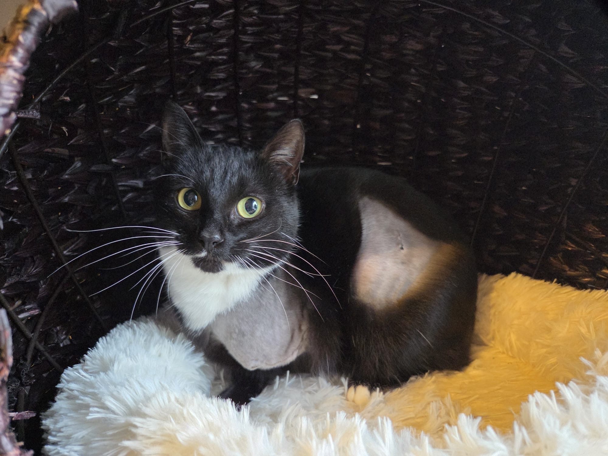 Haven had to have an operation to remove her front leg. She has been in recovery with a staff member since and is doing so well. Due to now only having 3 legs, she would ideally need to be a house cat with a catio to explore in, or a rural location away from busy roads, as she used to enjoy exploring outside.