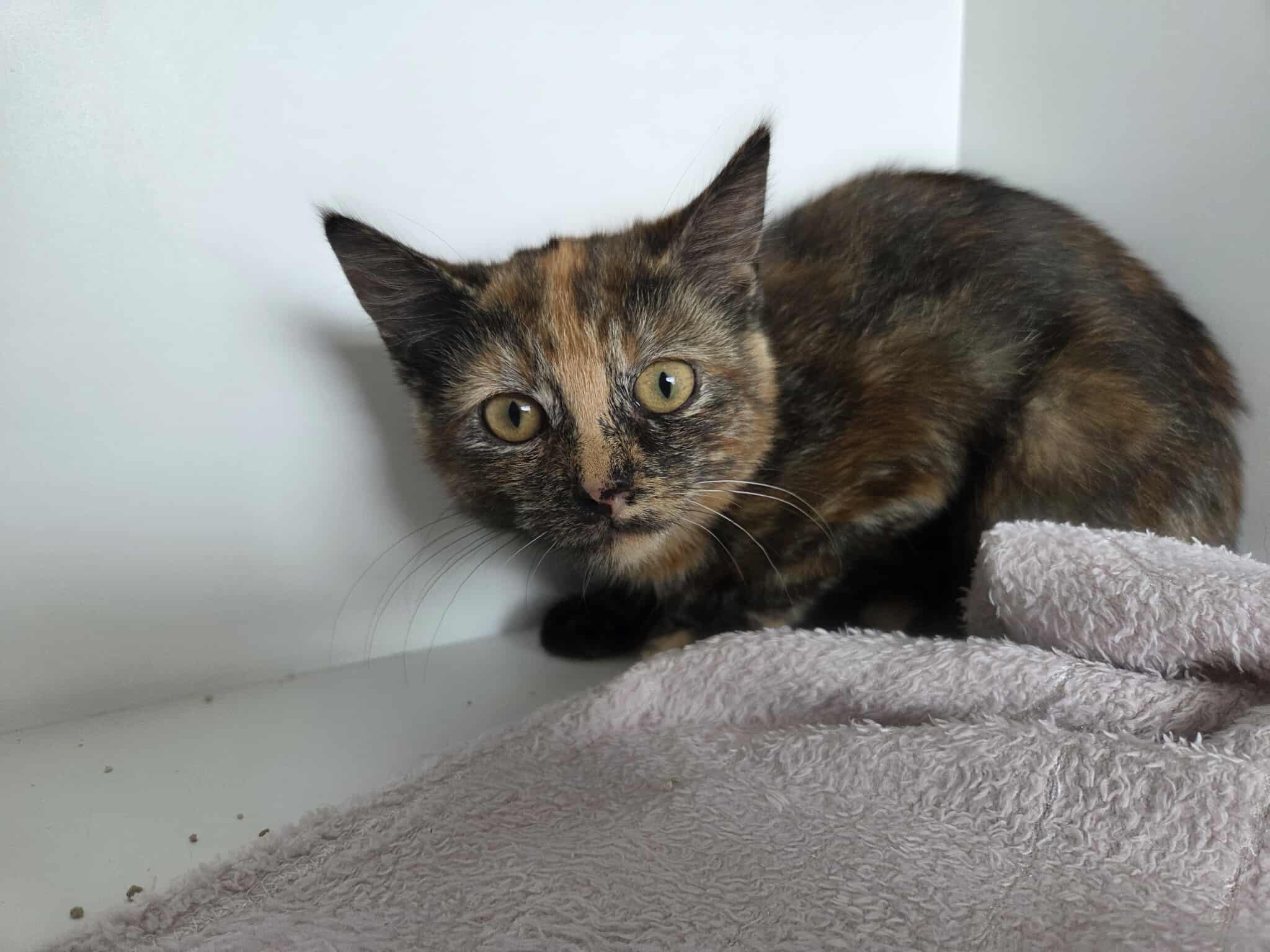 She would thrive from a confident resident cat. Once she gets over the initial greeting, Shoal will relax and become a snuggle bug, she loves a chin tickle and gives great purrs.